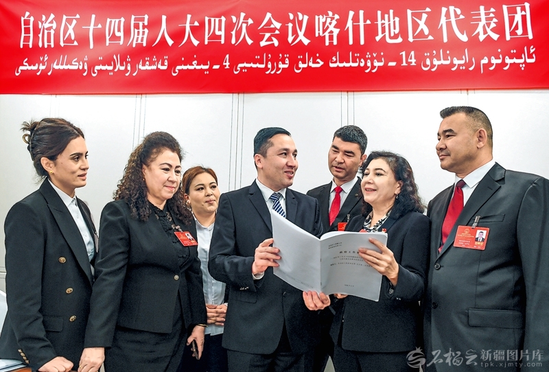 1月29日,喀什地区代表团代表在审议间隙,继续热议政府工作报告。