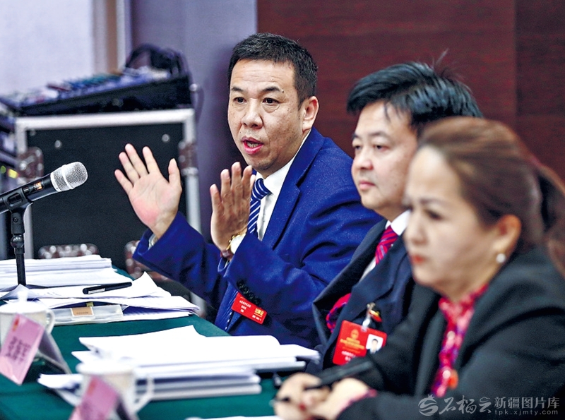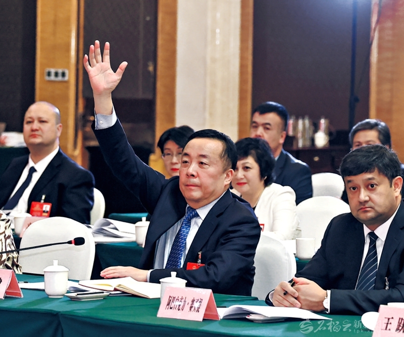 1月27日,孙健代表在参加乌鲁木齐市代表团审议时,举手发言。