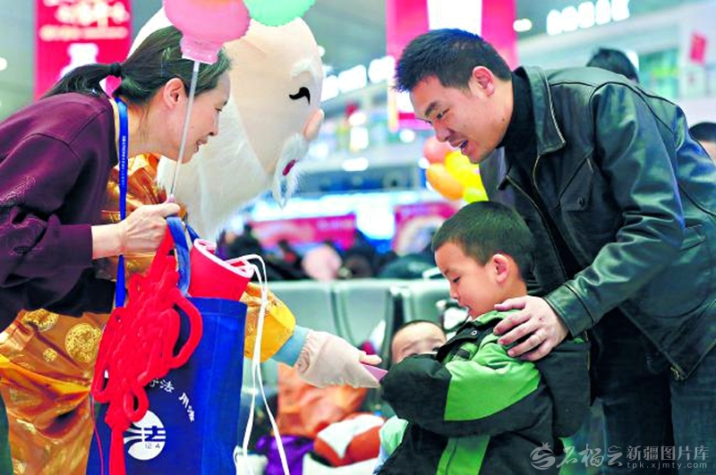 2月2日,乌鲁木齐站工作人员给旅客送礼物。当日,2026年春运正式启动,新疆铁路预计发送旅客607万人次。春运期间,新疆铁路部门大力提升服务质量,暖心护航平安回家路。 □石榴云/新疆日报记者李瑞摄
