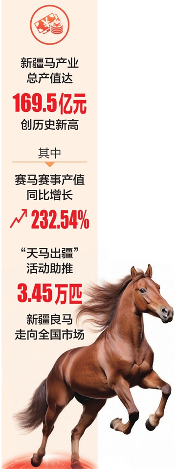 本报乌鲁木齐2月2日讯 石榴云/新疆日报记者赵悦从新疆马业协会年会上获悉:2025年新疆马产业总产值达169.5亿元,创历史新高。其中,赛马赛事产值同比增长232.54%,“天马出疆”活动助推3.45万匹新疆良马走向全国市场。