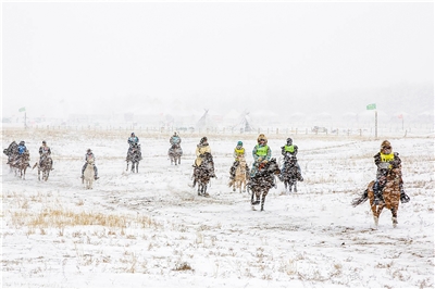来自北京、新疆、云南、贵州、内蒙古等8个省市区以及俄罗斯的马术爱好者齐聚在黄金草原—白音锡勒,共同体验冬日马术越野的独特魅力。
