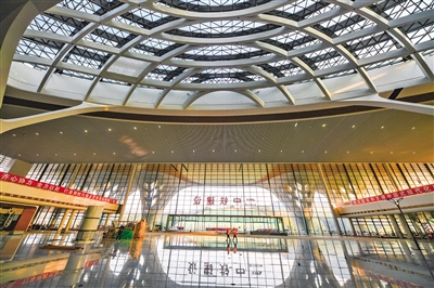 这是12月23日拍摄的建设中的重庆东站站房及配套综合交通枢纽工程一角。目前,由中铁建设等单位承建的重庆东站站房及配套综合交通枢纽工程正加紧建设,进展顺利。重庆东站站房及配套综合交通枢纽工程位于重庆南岸茶园片区,是交通强国建设站城一体化试点工程,建成后将引入渝湘高铁、渝万高铁、渝贵高铁、渝昆高铁等多条线路,成为西部地区最大高铁枢纽站。重庆东站预计将于2025年与渝湘高铁重庆至黔江段同步建成投用。新华社记者王全超摄