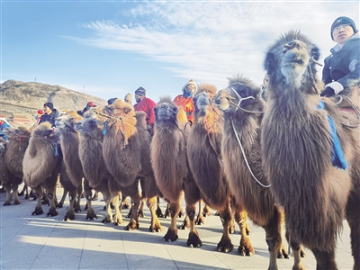 1月7日,牧民骑着高大威猛的骆驼,参加巴彦淖尔市乌拉特后旗第六届骆驼文化那达慕。那达慕举办美食品鉴、非遗文创展、年货大集等多项文旅活动。有着“中国戈壁红驼之乡”美誉的乌拉特后旗,近年来通过一系列优惠政策,在骆驼文化传承、物种保护、产品研发等方面实现快速发展。本报记者薛来摄