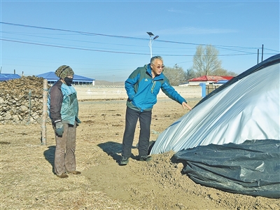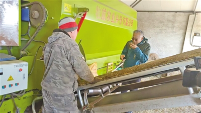科普服务队走访当地制作青贮饲料的舍饲养殖户,指导他们对混合饲喂配比进行调整。文/图 姜海霞
