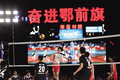 2024年7月18日至21日,鄂尔多斯草原村排暨沿黄九省区农牧民排球邀请赛在鄂托克前旗举行。本次邀请赛包括男子排球、女子排球、混合排球三个项目,共计265场比赛,来自甘肃、陕西、山西、宁夏、青海、内蒙古等九省区的103支代表队、1030名农牧民参赛。比赛现场还设有特色头饰、服装、玩偶等文创产品,辣椒、西瓜等农特产品,炖羊肉、烤全羊、烩酸菜、麻辣烫等特色美食展销区,打造了一场集文化、体育、民俗、美食、传统表演于一体的文化体育旅游盛宴,吸引了市民游客纷至沓来、围观打卡,有效拓宽了当地农牧民增收途径,为乡村振兴提供了有力支持。女排世界冠军、中国女排国家队原主教练郎平亲临现场,与群众分享女排精神并指导双方球员打排球,并被聘为“鄂尔多斯草原村排主教练”。郎平感慨地说:“我真没想到在祖国北疆的鄂尔多斯,有这么多热爱排球的农牧民。他们通过排球互相了解、增进友谊,让我很感动。”