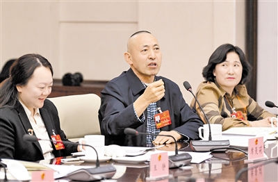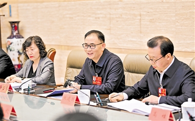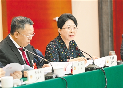 1月16日,在讨论两院工作报告时,自治区政协委员骆秀燕(右)建议,切实提升审判工作质效,下大力量解决“执行难”问题,加大对虚假诉讼的惩治力度,为高质量发展提供坚实的司法保障。本报记者 孟和朝鲁 摄