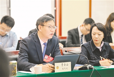 1月16日,自治区政协委员曹金山(左)建议,发挥我区农高区和农博园的示范带动作用,探索土地多元化经营模式,优化种植结构,加大科技投入和高产技术推广,实现农民增产增收。本报记者 孟和朝鲁 摄