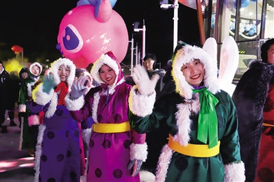 游客“吃饱喝足”,花车巡游已悄然而至,大家争先恐后地与演员招手互动、争相合影,为寒冷的冬日带来了温暖与欢乐。随后,星火志愿服务队、雪城义警、乌兰牧骑等团队为游客提供需求指引、行李搬运、旅游指南、落地迎宾等多类型服务。这些志愿者在火车站、景区等地忙碌着,用微笑和热情为游客提供帮助。