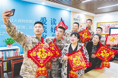 1月26日,在春节即将到来之际,武警鄂尔多斯支队达拉特中队的官兵和家属们一起挂灯笼、贴春联、包饺子,随处可见的年味,让官兵们感受到家的温暖。本报记者王晓博摄