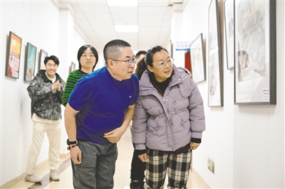 12月1日,残障人士在呼和浩特市玉泉区文化馆观看书画作品。12月3日是第34个国际残疾人日,由玉泉区残联主办的“残健同心,绽放光芒”主题活动暨第二届文艺汇演在玉泉区文化馆举行。活动通过文艺汇演、非遗木偶体验、书画作品展等形式,展现残障人士的艺术才华,弘扬自强不息的时代精神。本报记者王磊摄