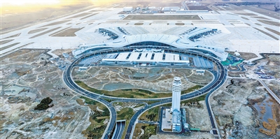 冬日里航拍镜头下的呼和浩特盛乐国际机场。作为内蒙古首座4F级机场,呼和浩特盛乐国际机场正全力推进通航前各项准备工作,目前项目核心建设内容已全面落地,为后续投运奠定了坚实基础,机场投运后将显著提升区域综合交通服务能力。本报记者王磊摄