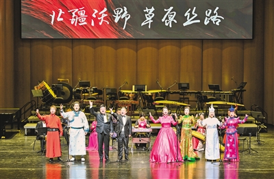 12月2日晚,内蒙古艺术学院师生表演歌曲联唱。当日,内蒙古艺术学院《北疆沃野草原丝路》专场音乐会在内蒙古乌兰恰特举办。演出以“北疆沃野育同心·草原丝路聚合力”为主旨,将非遗传承与现代艺术相融合,为观众呈现了一场兼具民族特色与时代精神的视听盛宴,奏响铸牢中华民族共同体意识的动人乐章。本报记者王磊摄