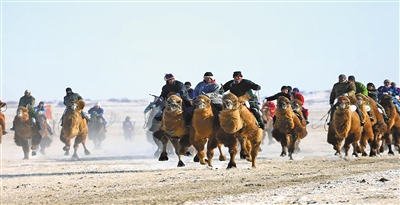 激昂的马头琴声与乌兰牧骑的精彩舞蹈点燃了现场气氛。篝火祈福仪式为冬日的雪原注入了温暖与祝福。参赛的搏克健儿与驾驭着盛装骆驼、骏马的参赛牧民列队而行,宛若一幅徐徐展开的流动长卷,将草原壮美与活力生动地呈现在雪原之上。