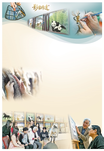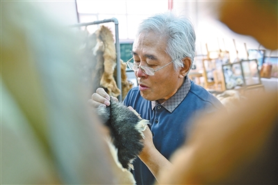 这不是标本制作,也非传统刺绣。这项名为“察哈尔毛绣”的国家级非物质文化遗产,又被称为“毛植”,它以动物皮毛上的锋毛为“线”,以纱网为“布”,匠人需将精选的动物毛发,依照其自然生长方向,通过栽植技术在纱网上制作出各种动物图案形状,供人们观赏或制成各种生活用品。