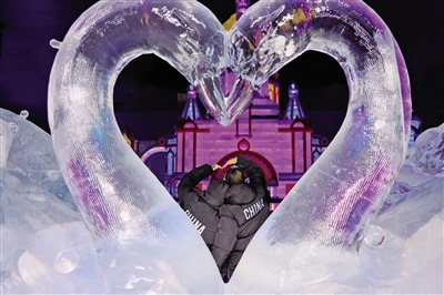 7月15日,游客在哈尔滨冰雪大世界梦幻冰雪馆内留影。当日正式入伏,许多游客来到哈尔滨冰雪大世界梦幻冰雪馆游玩,乐享冰雪带来的清凉。(据新华社报道)
