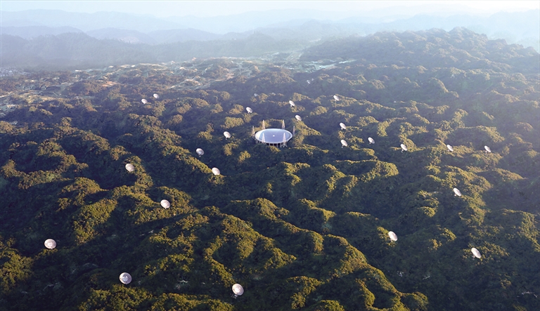 “中国天眼”全称500米口径球面射电望远镜,英文缩写为FAST,是中国独立自主设计并建造的世界最大的单口径射电望远镜。