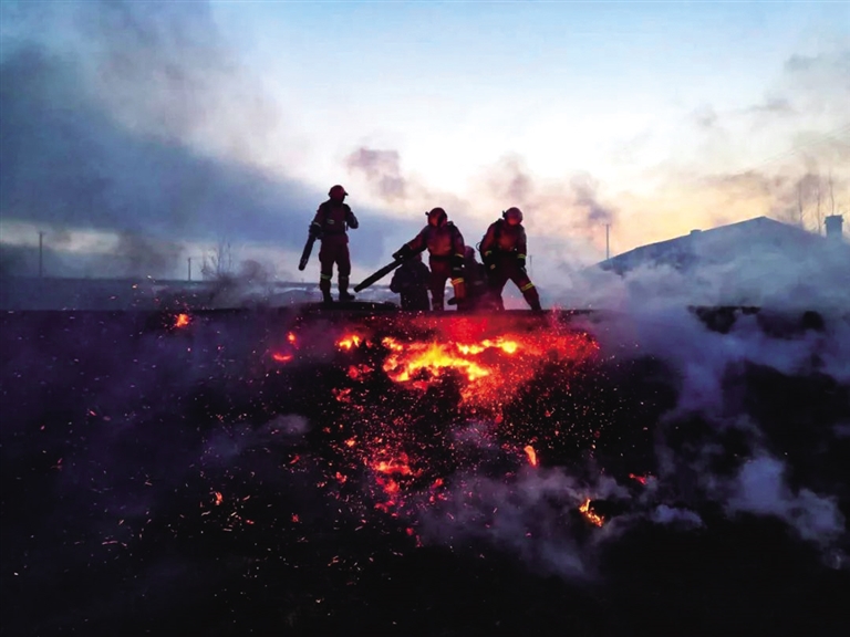如今,西乌珠穆沁旗已经踏上了畜牧业现代化发展的快车道,然而草原火灾的威胁仍如影随形,给牧民的生活带来巨大困扰。2023年,一场突发的草原大火连绵几十公里,吞噬了10多户牧民的上百吨草料,牲畜的口粮瞬间化为乌有。火情严峻,经过消防员们两天两夜的紧张救援,火势终于得到控制。他们把牧民的急难愁盼看在眼里、记在心上,救援刚刚结束,又去而复返,将筹款购买的600余捆草料送到牧民家中,解了上千头牛羊“断粮”的燃眉之急。