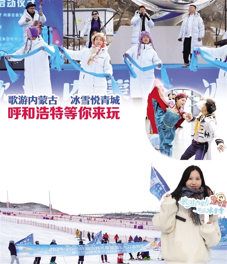 歌舞快闪、冰雪嗨玩、文创吸睛、宾朋欢畅……12月6日,“歌游内蒙古 冰雪悦青城”2024~2025呼和浩特冬季旅游&大众冰雪季暨马鬃山滑雪季活动在马鬃山国家级滑雪旅游度假地举行,为期5个月的冬季浪漫故事正式启幕!呼和浩特市文旅部门将聚焦“一廊·两轴·五带”,优化组合冬季文旅产品供给,精心策划跨年夜、花式闹新春等21项冬季旅游活动。 活动现场,呼和浩特市乌兰牧骑的队员们藏身人群中,突然送上的“文艺惊喜”让现场迅速升温,沉浸互动式演出更是大获好评。现场的烧麦人偶、黑悟空和萌宠巡游、雪骑旅拍打卡及游园活动等精彩内容也吸引了不少游客驻足。