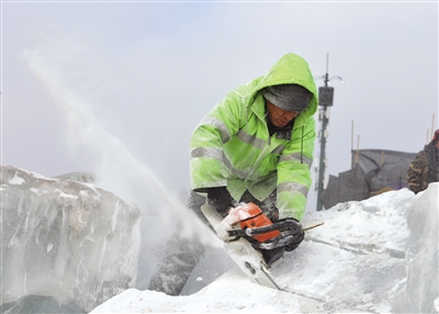 “想做这份工作,得耐得住严寒!当然,严寒也会回馈精美的冰雕作品。”来自哈尔滨的冰建师傅蔡云龙从事此项工作已有20多年,他告诉记者,呼和浩特冬天气温较高,因此开工较晚,为了赶进度,他们每天要工作10多个小时,好让市民游客早日看到冰雪胜景。