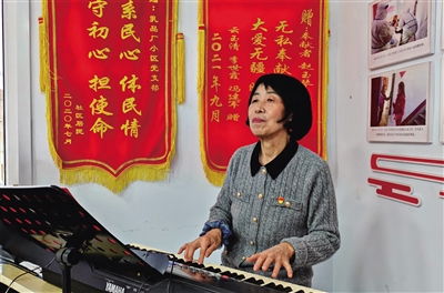元旦前夕,记者走进四千米社区乳品厂小区活动室,赵玉琴正组织社区的演员们做元旦晚会的最后一次带妆彩排,她一人身兼晚会总导演、总策划、主持人、电子琴伴奏、演员数职。