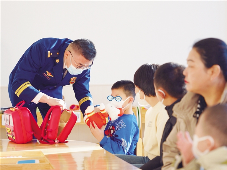 “我的愿望是和消防员叔叔击个掌”“我的愿望是去消防队”……1月3日,为了满足鄂尔多斯市儿童福利院孩子们的微心愿,鄂尔多斯市消防救援支队在鄂尔多斯市儿童福利院开展了一场“圆梦微心愿 蓝焰护成长”圆梦之旅。 活动现场,两辆消防车缓缓驶入福利院,消防员身着整齐的制服,面带亲切的笑容,出现在孩子们面前,鄂尔多斯市消防救援支队副支队长王鹤代表鄂尔多斯消防将精心准备的消防文创小书包、笔袋和可爱的消防小熊作为礼物赠送给孩子们。在福利院里,消防员和孩子们一起开展了欢乐的互动游戏。大家围坐在一起,用彩泥制作消防车模型,孩子们充分发挥想象力,在消防员的指导下,一辆辆色彩鲜艳、形态各异的“彩泥消防车”诞生了。现场充满了欢声笑语,孩子们沉浸在欢乐与温馨的氛围中。消防员还带领孩子们参观了消防车辆和器材,熟悉了基本灭火器材、救援、防护等装备,用通俗易懂的语言、形象生动的肢体动作,耐心细致地讲解各种消防装备的性能、用途以及操作,听得孩子们不时发出惊叹声,并鼓掌向消防员们表示敬意!