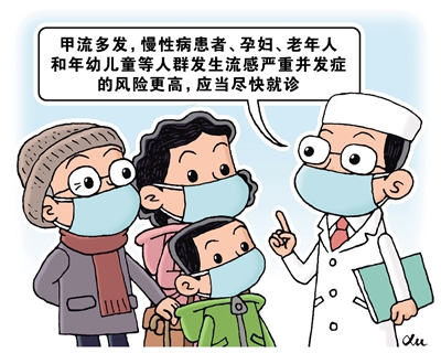 广州医科大学附属第一医院广州呼吸健康研究院副院长杨子峰建议,慢性病患者、孕妇、老年人和年幼儿童等人群发生流感严重并发症的风险更高,特别是当出现持续发热3天未见好转或病情反复,呼吸频率明显加快、呕吐等症状时,应当尽快就诊。在确保用药安全、有医生指导的前提下,流感抗病毒药物应在确诊后及早使用,原则上最好在发病后48小时内使用。