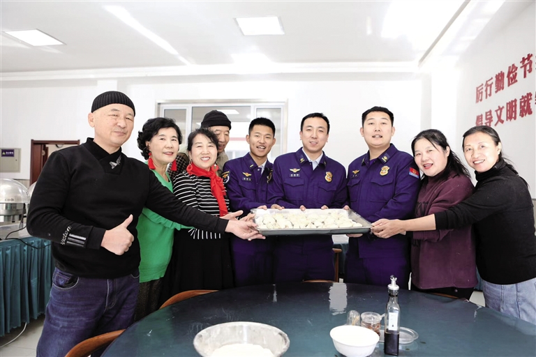 艺术团里多是六七十岁的老年人,在他们眼里,年轻的消防员就像自己的孩子一样,能为他们包一顿饺子,送一份关爱,很开心。
