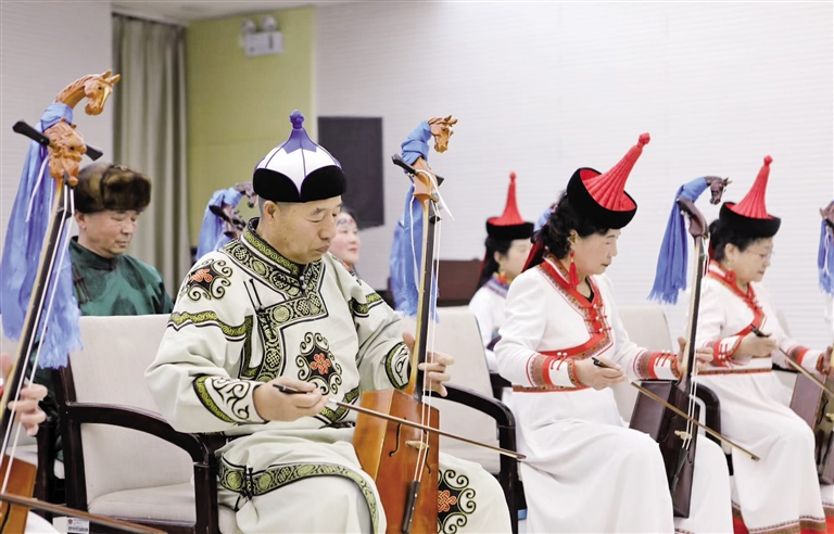 演出在悠扬深沉的马头琴声中拉开帷幕,10位身穿传统蒙古族服饰的演奏者整齐排列,拨弦拉弓间,诉说着古老而动人的故事。前奏《远古的梦》,醇厚的音色,带着草原深处的神秘与悠远,让大家恍若置身广袤无垠的大草原。紧接着,节奏陡然加快,一曲《赛马》热烈奏响,激昂的琴声如万马奔腾,声声入耳。