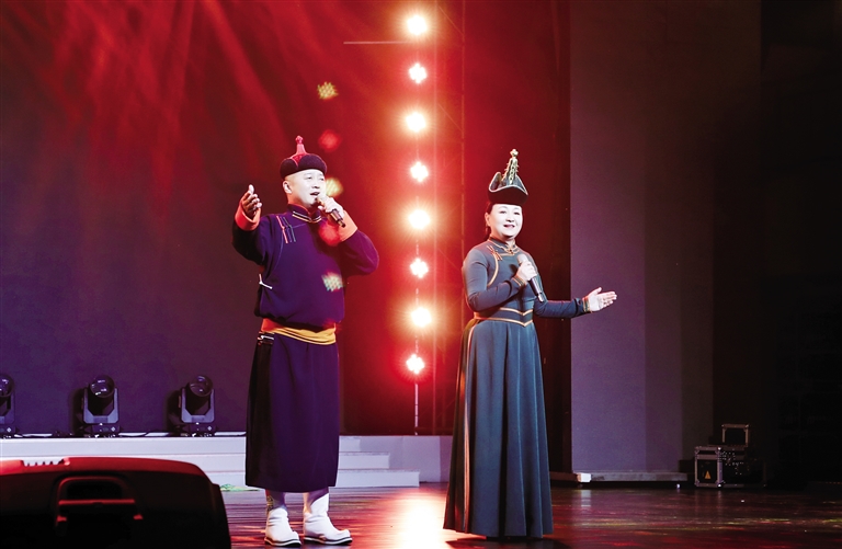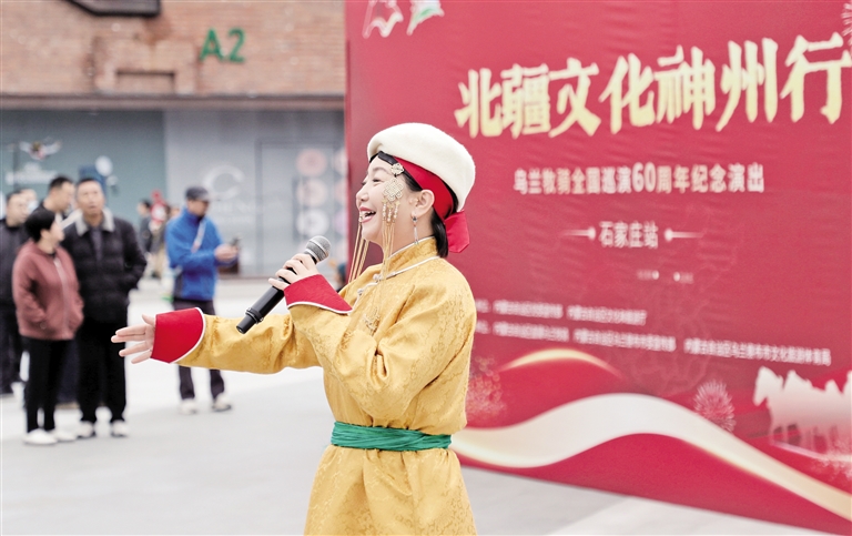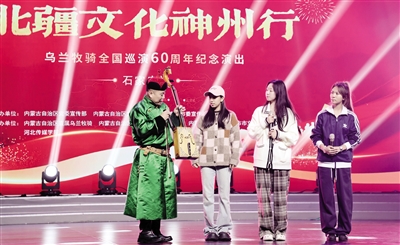 演唱者乌日嘎对记者说:“这首长调民歌是脍炙人口的经典曲目,我为家乡群众唱了20多年。今天,我演唱的是加入短调元素的全新版本,希望给石家庄观众带来不一样的视听感受。”