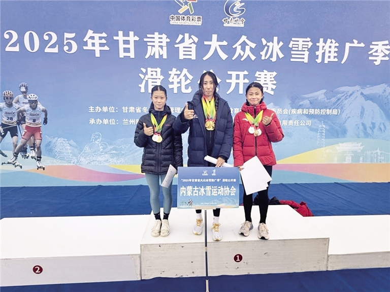 新报讯(草原云·北方新报首席记者 牛天甲) 10月20日,2025年甘肃省大众冰雪推广季滑轮公开赛在兰州新区落幕。内蒙古冰雪运动协会选派的3名运动员全员发力、捷报频传,在多个项目中强势突围,最终斩获5枚金牌、2枚银牌,实现全员获奖,尽显内蒙古群众冰雪运动的强劲实力与蓬勃活力。 成年组赛场,内蒙古运动员郑冬雪堪称“夺冠常客”。她在成年女子自由式滑轮个人短距离项目中以2分13秒29的优异成绩摘金,随后又在成年女子传统式滑轮12公里赛事中,以35分50秒83的成绩再夺一金,在成年女子自由式滑轮8公里项目中以18分50秒57的绝对优势斩获第三枚金牌,成为本次赛事成年女子组的最大赢家。