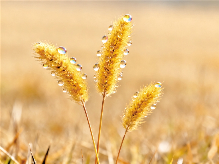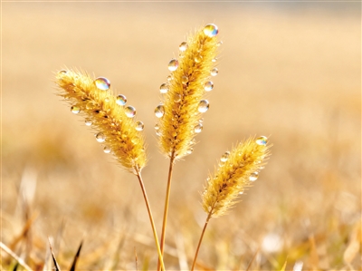 那是个降温的清晨,我裹紧外套匆匆赶路,脚下却忽然被什么东西绊了一下。低头一看,是几株长势旺盛的狗尾草,它们的穗子沉甸甸的,沾着晶莹的露珠,在灰蒙蒙的天色里泛着微光。我本想一脚踩过去,可指尖无意间触到草叶,竟没有想象中的冰冷,反而带着一丝微弱的暖意。许是夜里的露水还没散尽,又或是草叶还在努力吸收着晨光,那温度像一颗小小的暖阳,轻轻落在我的心上。