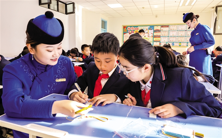 10月31日,内蒙古博物院2025年“行走中的博物馆——文物里的中华美学”《玉艺寻幽——玉器工艺之美》主题课程在呼和浩特市苏虎街实验小学开展,学生们与“玉器美学”进行了一场深度对话。接下来,内蒙古博物院将带着该系列课程走进更多学校,通过历史追溯、工艺解析、艺术鉴赏等多元形式,让学生在实践中提升审美感知力与文化创造力。摄影/草原云·北方新报首席记者 牛天甲