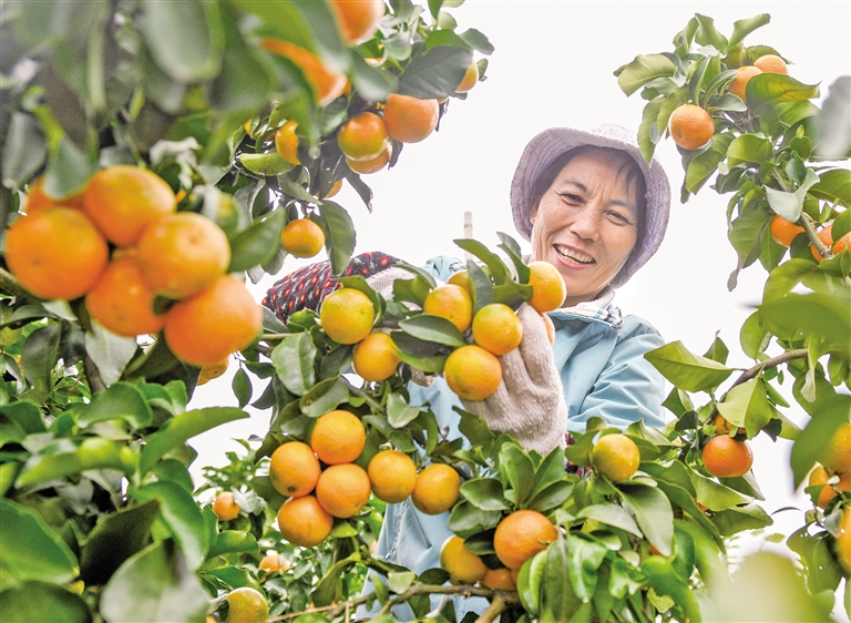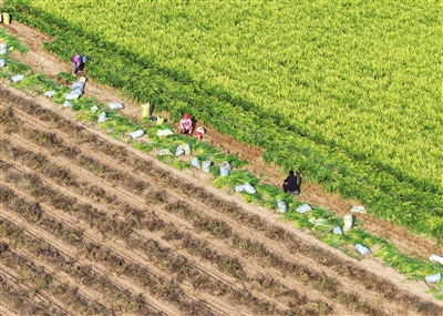 11月2日,河南省焦作市孟州市大定街道水运村农民在田间抢收小黄姜。 11月2日,湖南省永州市道县蚣坝镇兴桥村村民在采摘沙糖桔。 深秋时节,各地农民抢抓农时加紧收获,处处是喜人的秋日好“丰”景。(据新华社报道)