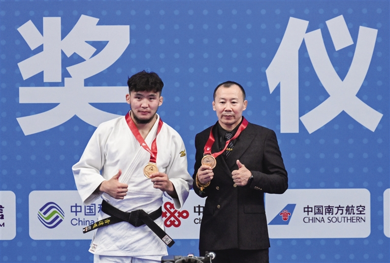 新报讯(草原云·北方新报首席记者 牛天甲) 11月11日,第十五届全国运动会柔道比赛进入第二个比赛日的争夺。在男子73公斤级的金牌赛中,内蒙古选手青达嘎战胜对手,蝉联了该项目的冠军。这枚金牌也是十五运会开幕后内蒙古代表团夺得的首枚金牌。 当日的比赛在内蒙古选手青达嘎与山东队的王由良之间展开。比赛伊始,青达嘎展现了绝对实力,在比赛中以强大的压迫力掌控节奏,率先得到一个技有,掌握了场上的主动权,在距离比赛结束还有10多秒时,青达嘎更是抓住机会以一记无可挑剔的投技,将对手精准地摔落在垫上,动作干净利落,青达嘎以柔道中最完美的一本赢得了胜利,夺得金牌。