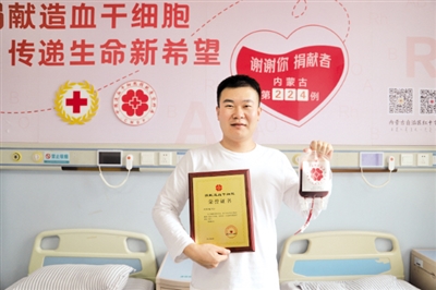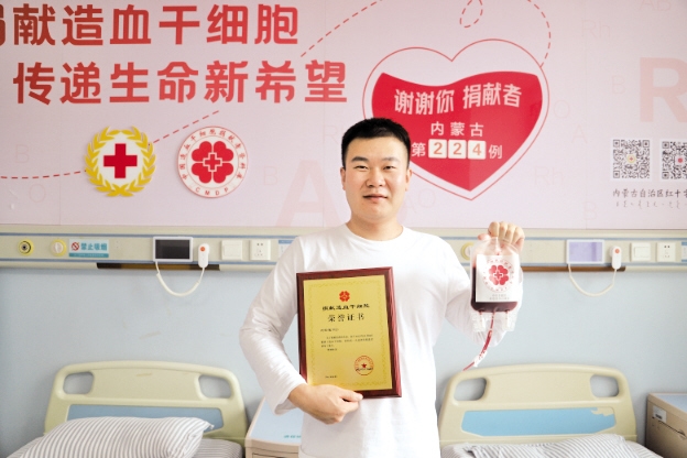 新报讯(草原云·北方新报记者 王利军) “祝愿患者早日康复,也希望有更多的爱心人士积极加入中华骨髓库,为血液病患者送去生命希望。”11月6日,内蒙古第224例造血干细胞捐献者刘先生说。当天,刘先生在呼和浩特市顺利捐献了295毫升造血干细胞混悬液,为一名陌生血液病患者送去“生命种子”。 刘先生来自锡林郭勒盟,是一名护士。在刘先生身边,已有两位同事用实际行动诠释医者大爱——他们分别是内蒙古第118例、第209例造血干细胞捐献者。在他们的影响下,刘先生在去年参加无偿献血活动时加入了中华骨髓库,希望有一天也能够以另一种方式拯救生命。