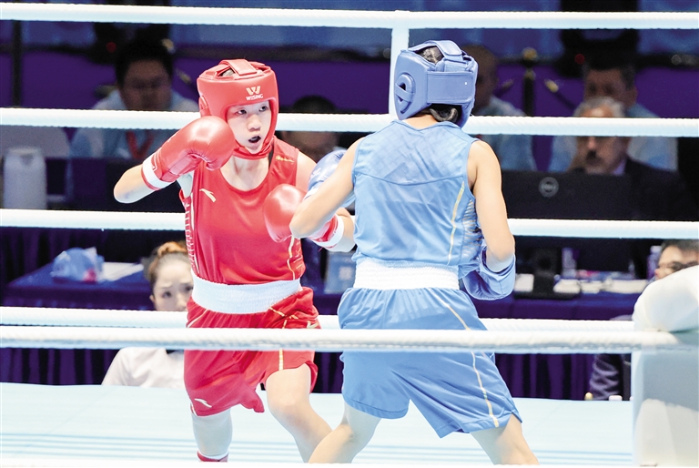 新报讯(草原云·北方新报首席记者 牛天甲) 11月13日下午,第十五届全国运动会拳击项目在深圳市宝安体育中心体育馆继续进行。首次站上全运舞台的内蒙古健儿赵轩强势晋级拳击女子54公斤级决赛。 当日半决赛中,赵轩迎战辽宁队选手李振艳。比赛开场,赵轩便牢牢占据主动。面对对手进攻,赵轩灵活闪躲,并及时调整身位。后两个回合,赵轩凭借凌厉的攻守频频施压,对手并未找到逆转的机会。最终,赵轩以4:1挺进决赛。