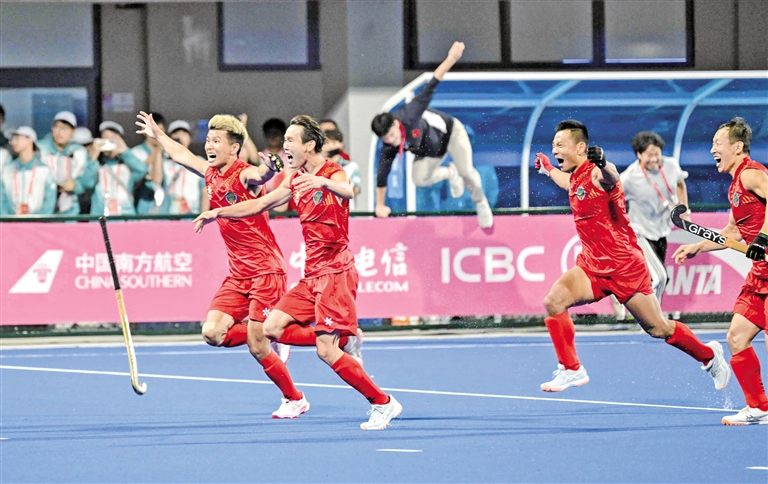 新报讯(草原云·北方新报首席记者 牛天甲) 11月15日晚,广东云浮的夜空被欢呼声点燃。第十五届全国运动会男子曲棍球决赛场上,当内蒙古队第五记23米球稳稳入网,全场瞬间沸腾——3:2,内蒙古队力克老对手广东队,终结了长达32年的全运会冠军荒,将沉甸甸的金牌紧紧攥在手中。 这是一场宿命般的对决。上届全运会决赛,内蒙古队正是在23米球决胜阶段2:3憾负广东队,与冠军失之交臂。此番重逢,憋着一股劲的内蒙古队从开局便展现出破釜沉舟的气势。然而命运似乎开了个玩笑,开场仅2分钟,内蒙古队因防守犯规送点,广东队一蹴而就取得领先。第二节,内蒙古队两次获得短角球机会,却都未能转化为得分,0:1的比分保持到半场结束。