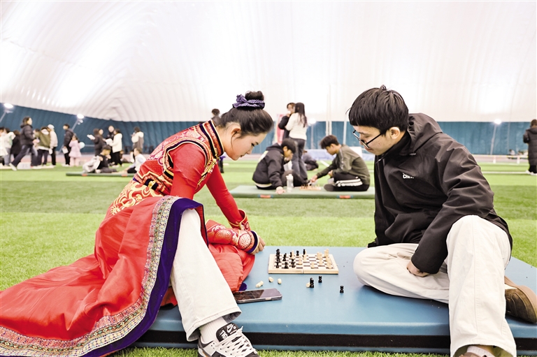 11月15日,内蒙古医科大学举办首届铸牢中华民族共同体意识文化节暨“北疆阿娜尔”传统体育运动会。本届文化节以“非遗焕新韵 运动聚同心”为主题,结合丰富多彩的歌舞表演和非遗文化体验以及传统体育项目,打造了一场沉浸式的文化体育盛会。传统体育运动会赛场上,搏克、传统弓、蒙古象棋、布鲁、鹿围棋等民族特色体育项目轮番上演,选手们在竞技中交流技艺,在协作中增进情谊。非遗文化体验区则让传统文化“活”起来、“火”起来——中蒙医专家现场义诊、药食同源体验、蒙药材标本鉴赏、蒙药文创手工制作等互动项目,让师生零距离感受中华优秀传统文化的魅力。文·摄影/草原云·北方新报记者 王利军
