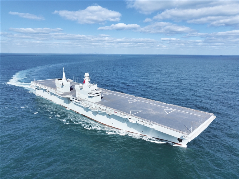 14日9时,我国076两栖攻击舰首舰四川舰从上海沪东中华造船厂码头解缆启航,赴相关海域开展首次航行试验任务。自2024年12月下水以来,四川舰建造工作按计划稳步推进,顺利完成系泊试验和装设备调试,具备出海试验的技术条件。(据新华社报道)