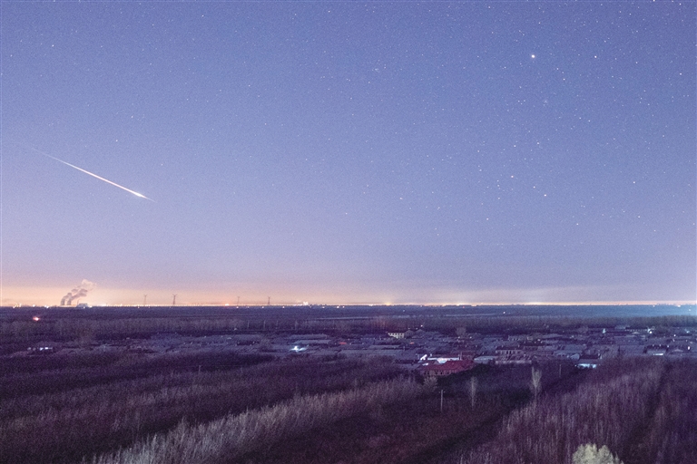 11月18日凌晨在黑龙江省哈尔滨市拍摄的狮子座流星雨。11月18日凌晨,被称为“流星雨之王”的狮子座流星雨迎来极大。狮子座流星雨是一个典型的周期性流星雨,引起这个流星雨的是一颗名叫坦普尔-塔特尔的彗星。(据新华社报道)