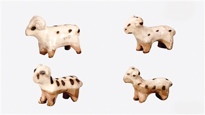 天儿冷了,是不是想吃涮羊肉?羊来啦!不过,这几只辽代“小肥羊”太可爱了,强烈建议:不吃! 当看见这几只萌物时,你是舍不得下筷子的。这群小瓷羊出土于山西大同上皇庄遗址,堪称辽代“萌系文物”担当,大小和今天的盲盒手办差不多。如果你不小心把它们误认成小狗,那一定是忽略了其独特的灵魂——羊角。犄角盘成了圆圈状,四肢呈站立状,仔细看胖胖的小短腿,肥肥的尾巴,脚尖微微向前弯曲,细节直接拉满好感。
