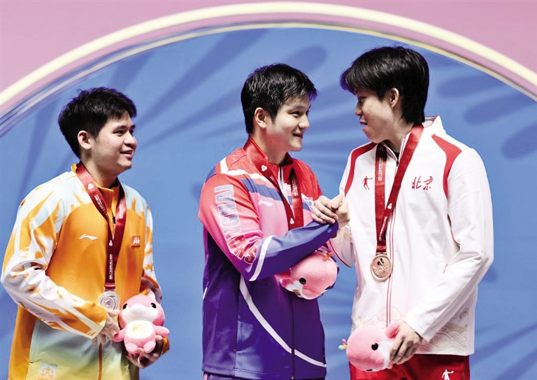 获得亚军的四川队选手吴艳妮(左)19日在颁奖仪式上哭泣 11月11日,河北队选手于子迪在比赛中,最终她打破亚洲纪录获得冠军。 11月16日,冠军上海队选手樊振东(中)与季军北京队选手王楚钦(右)在乒乓球男单颁奖仪式上握手致意。 湖北队选手王瑞苗霹雳舞夺金 广东队组合林高远(下右)/刘诗雯(下左)14日庆祝乒乓球混合双打夺冠。 11月21日的闭幕式现场 湖北队选手李泽洋(左)17日在比赛中 广东队选手苏炳添20日在赛后向观众致意 11月17日,湖北队选手闫子贝在男子4×100米混合泳接力颁奖仪式上亲吻金牌。 11月12日,内蒙古队选手佈和额尔敦在赛后庆祝胜利。最终他获得季军。 11月12日,冠军北京队选手杨家玉与教练、丈夫魏新猛在女子20公里竞走颁奖仪式上庆祝。 11月14日,内蒙古队选手赵轩战胜河北队选手常园,夺得冠军。 11月15日,内蒙古男曲球员在比赛后庆祝胜利。 广西队选手韦永丽(中)17日在女子100米决赛后 11月16日,福建队选手邱祺缘在女子高低杠决赛中。 人形机器人14日在拳击男子92公斤级颁奖仪式上为颁奖嘉宾递上奖牌 11月21日夜,第十五届全国运动会在璀璨中落下帷幕。闭幕式上,一组特别的影像吸引了所有人的目光,这些瞬间穿越时空,将拼搏、汗水与荣光汇聚于此。(据新华社报道)