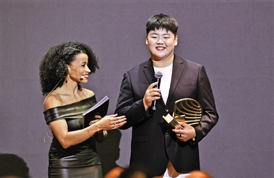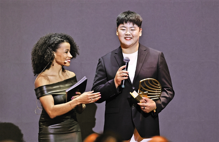 张家乐(右)发表获奖感言