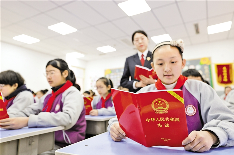 12月2日,在河北省邢台市内丘县朝阳小学,内丘县人民检察院检察干警为学生讲解宪法知识。12月4日将迎来第十二个国家宪法日,各地开展多种形式的普法宣传。(据新华社报道)