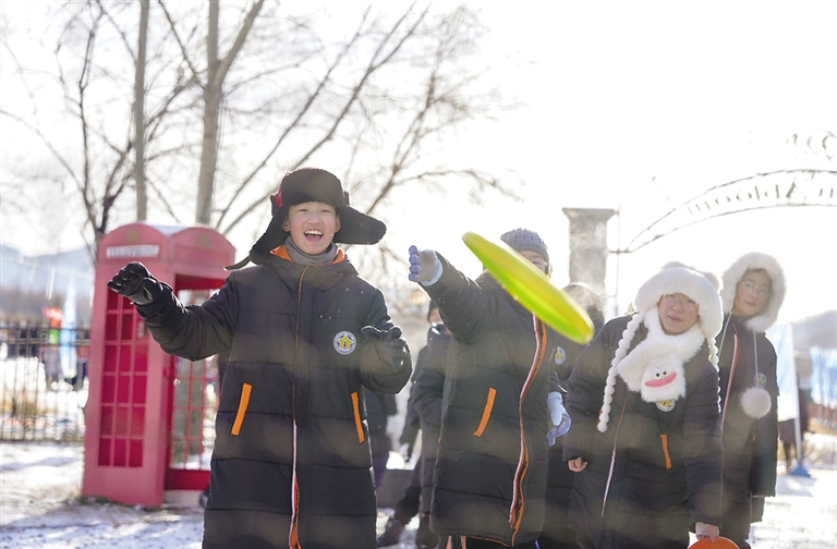 12月3日,吉林市第一实验小学学生在吉林市纳美山谷度假区体验雪地飞盘。当日,吉林省面向全省义务教育阶段学生设立的“冰雪假期”开启。12月3~7日“冰雪假期”期间,全省义务教育学校全部放假,学校不安排上课,不布置书面作业,鼓励学生积极参加各类研学、户外活动。吉林省内具有合格资质规范运营的滑雪场、滑冰场、A级旅游景区,推出学生门票减免、雪具租赁优惠等惠民政策,让学生们在假期时光中尽享冰雪运动的乐趣。 摄影/新华社记者 颜麟蕴