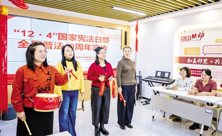 12月4日,呼和浩特市玉泉区清泉街社区举办“12·4”国家宪法日暨全民普法40周年宣传活动。活动通过文艺演出、法律咨询与曲艺普法等生动形式,面向居民宣传宪法知识、弘扬法治精神,切实提升全民法治素养。 摄影/草原云·北方新报首席记者 牛天甲
