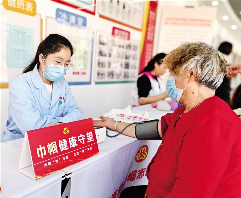 在“巾帼法护万家”摊位,市妇联创新开设“12338热线现场办公席”,接线员从电话那端来到居民面前;“巾帼健康守望”摊位前排起了队,志愿者们熟练地为居民测量血压、血糖;“巾帼暖心服务”摊位的3位理发师手中剪刀翻飞,一下午让数十位老人焕发新颜……