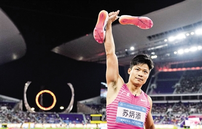 2015年,苏炳添在钻石联赛美国尤金站中跑出9秒99,成为首位突破10秒大关的中国人。2018年,苏炳添在世界挑战赛马德里站百米决赛中跑出9秒91,追平亚洲纪录。2021年举行的东京奥运会上,苏炳添在半决赛上跑出9秒83,打破亚洲纪录。今年11月20日,苏炳添在十五运会的男子4×100米接力决赛中,跑完了自己运动员生涯的最后100米,他和广东队的队友获得第四名。
