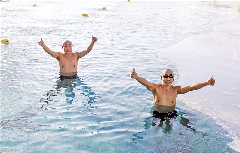 12月11日,呼和浩特市青城公园冬泳基地热闹非凡,数十名冬泳爱好者破冰击水,以独特的方式畅享冬日健身乐趣。尽管气温跌破冰点,寒风凛冽,但冬泳爱好者们无惧严寒,换好装备后依次跃入冰水中。大家或劈波斩浪、或畅游前行,矫健的身姿在冰冷的水面划出一道道优美弧线,成为一道别样的风景线。摄影/草原云·北方新报首席记者 牛天甲