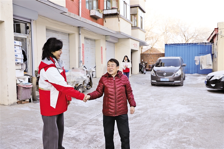 高改过与回访人员握手